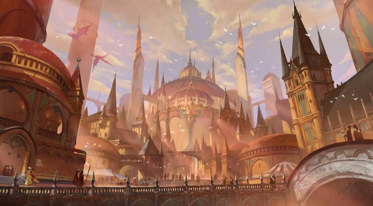 Architecture of Solandix is the most distinctive from the other cities within Synestia, mostly adorned with intricate decorations. This was mainly caused by the necessity to have distinguished area for the nobility, since each city has their own color to be proud of. The buildings within the city are mainly residents for the nobles. From mansions, to spacious stables for those who own exotic creatures as their pets. As additions for the residents, there are lavish markets for royalties, with some royal gardens for everyone to enjoy.In the middle of it all, lies the Royal Palace. The residence for the ruling House, no other than House of Veradisia. Not only does it serve as their home, it also serve as the base of their government.