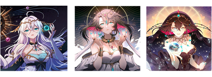 Respectively from left to right, above is the appearance of Goddess of Wisdom, Goddess of Mercy, and Goddess of Courage. Each have their own name, role, and power.Hasafa, the Goddess of Wisdom. True to Her title, wisdom is her forte. She became the main leader and judge figure among the Blessing Gods, due to Her wisdom. Her wisdom is so vast, to the extent of knowing any kind of knowledge there is to share. Without any fancy usage, Her wisdom itself was already considered as her power. No one could possibly knew every intricate details happening upon the lands, not like Her. Among the oceans of knowledge within herself, science was the most frequently used knowledge of Hers, as seen how She left Synestia's Zen Codex as her reliquiae before she must disappear from Zerynthia. Even in Her absence, Her judgement is eternal through Varna―special substance within Veradisia's blood.Niema, the Goddess of Mercy. Just like Her title, merciful heart and soul like no other is her power. Ridiculous? Wait until you know what She can do once she bestows her mercy towards something. Even the most barren lands can be fertile once She puts her mercy towards it. Thus, her reliquiae as Krissala, Synestia's omnipotent crystal which bestows her everlasting mercy towards Synestia.